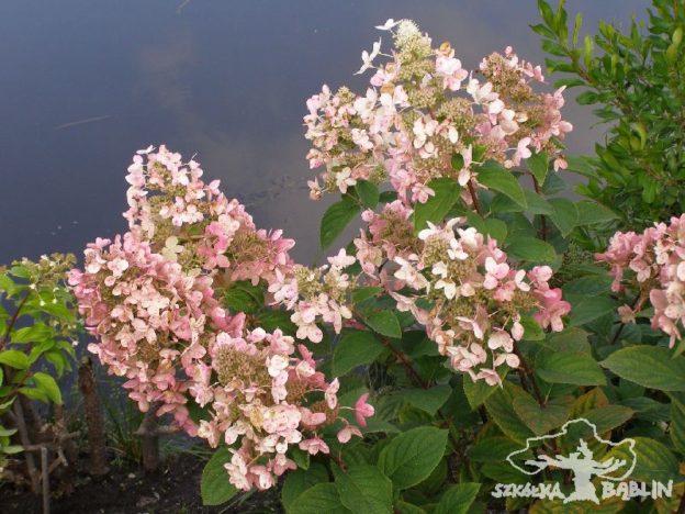 Rzadka odmiana hortensji bukietowej, która posiada pędy wyprostowane, skierowane ukośnie do góry. Osiąga wys. do 2 m i posiada rozłożysty pokrój. Odmiana ta jest dekoracyjna z bardzo długich, nawet do 40 cm białych stożkowatych kwiatostanach. W skład kwiatostanów wchodzą zarówno kwiaty płodne, jak i te dekoracyjne 4 – płatkowe płonne, których jest więcej. Pomimo, że kwiatostany nie są pełne robią niesamowite wrażenie swą wielkością. Na początku kwitnienia posiadają barwę czysto białą, która jednak dość wcześnie zmienia się na intensywnie ciemno-różową. Okres kwitnienia przypada od VII – IX. Najlepiej rośnie na glebach próchnicznych o odczynie lekko kwaśnym. Stanowisko słoneczne lub pół-cieniste. Wymaga gleb umiarkowanie wilgotnych, szczególnie w okresie kwitnienia. Wskazane jest cięcie odmładzające co 2 – 3 lata w celu uzyskania niezbyt gęstego pokroju, które zapewnia dorodne kwiatostany. Odmiana rzadko spotykana, a na pewna warta częstszego używania w naszych ogrodach. Wyhodowana przez Sir Harolda Hilliera w Gardens and Arboretum Engelarid w 1989 r.